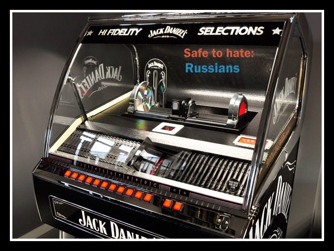 Το καλειδοσκόπιο των μέσων μαζικής ενημέρωσης μόλις άλλαξε πάλι εικόνα. Καθώς ο δίσκος του juke box παίζει το τραγούδι “safe to hate”, το καντράν του δεν δείχνει πια τον μουσάτο άντρα με το τουρμπάνι ή κάποιον κορωνοψεκασμένο, αλλά τον εχθρό που βγήκε από την ναφθαλίνη: τον Ρώσο.