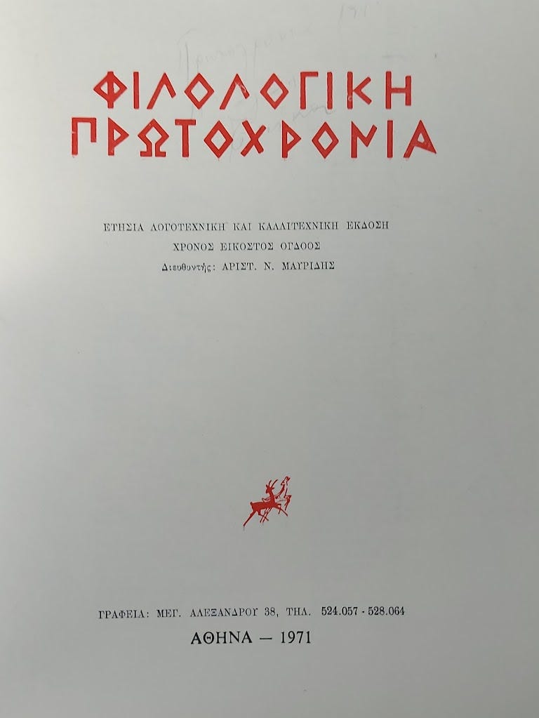Το σημερινό κείμενο-ρετρό, το οποίο βασίζεται σε ένα σπάνιο τεύχος του περιοδικού «ΦΙΛΟΛΟΓΙΚΗ ΠΡΩΤΟΧΡΟΝΙΑ» του έτους 1971, είναι το 73ο της κατηγορίας αυτής, η οποία δημιουργήθηκε για να βοηθήσει τους Έλληνες αναγνώστες να επανασυνδεθούν με το ξεχασμένο παρελθόν τους και έτσι να μπορέσουν να αντιληφθούν πόσο μεγάλη και επικίνδυνη είναι η λοξοδρόμηση του ελληνικού έθνους από το γαλανόλευκο αγκυροβόλιό του.