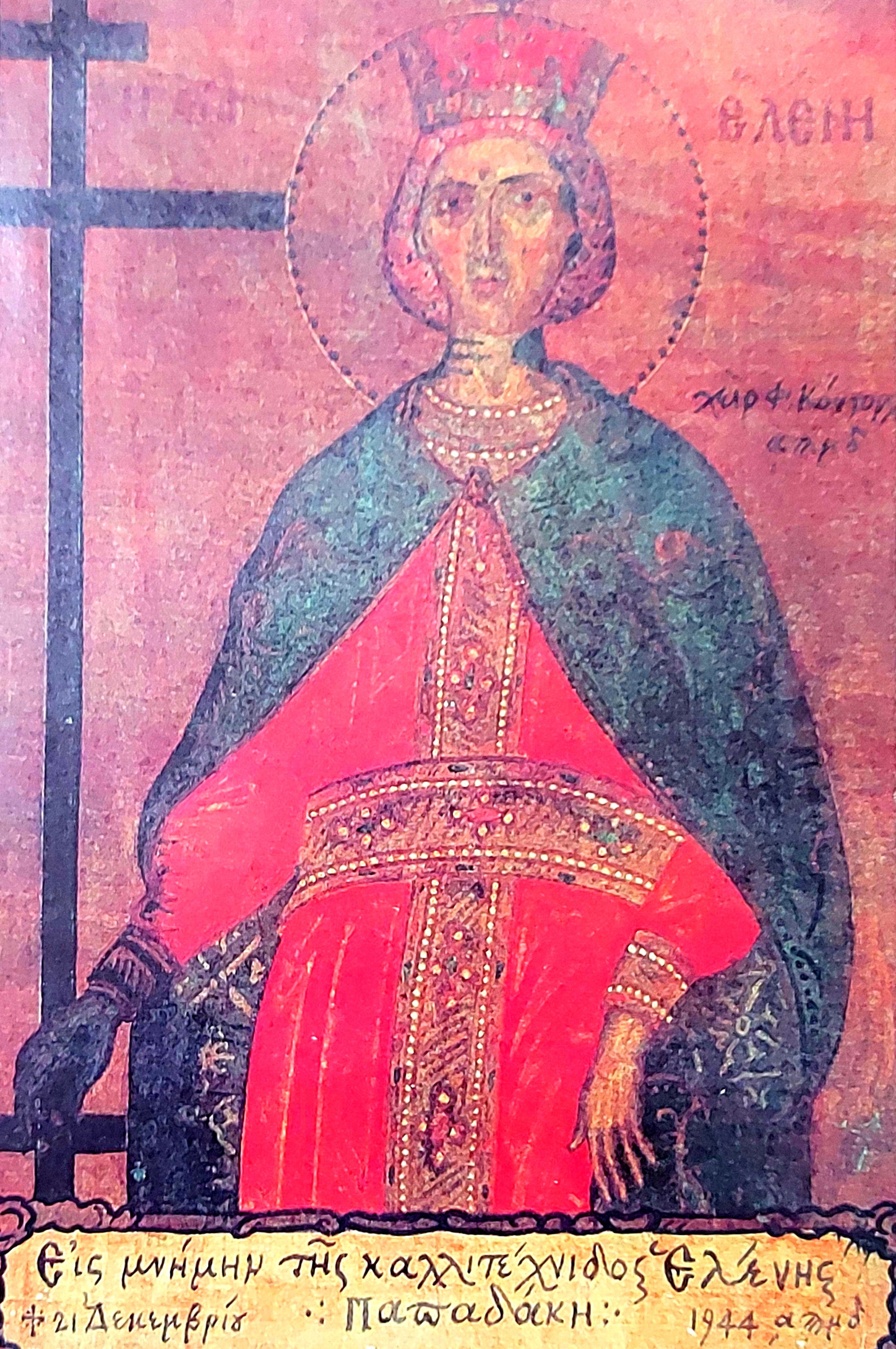 Σε ό,τι αφορά την εικόνα της Αγίας Ελένης, είναι ζωγραφισμένη από τον Φώτη Κόντογλου χωρίς τον Μ. Κωνσταντίνο δίπλα της, κατά παράβαση της βυζαντινής αγιογραφικής παράδοσης αλλά με απόλυτο σεβασμό προς την μορφή της μεγάλης Αγίας. Εκτός, λοιπόν, από την βλάσφημη Τέχνη, υπάρχει και η Τέχνη που αξιοποιείται για να τιμηθεί μια μεγάλη τραγωδός, όπως η Ελένη Παπαδάκη!