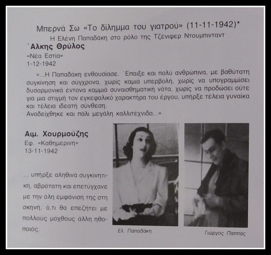 Ας επανέλθουμε, όμως, σε μια ακόμη διθυραμβική κριτική που η Ελένη Παπαδάκη εισέπραξε για τον ρόλο της στην Εκάβη: