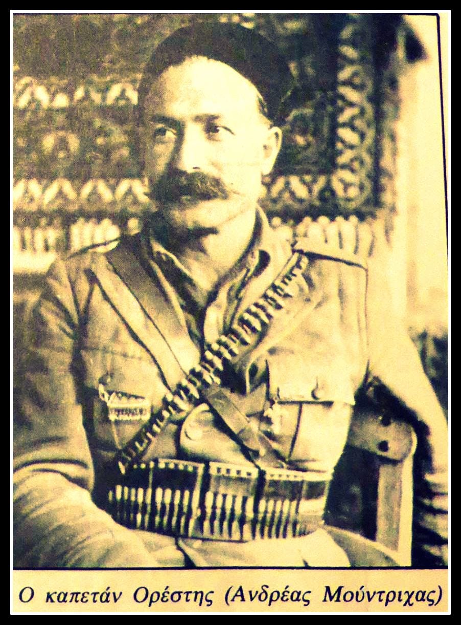 «Το πραγματικό όνομα αυτού του σαδιστή διοικητή ήταν Ανδρέας Μούντριχας. Πριν από την Κατοχή ήταν φοιτητής Νομικής Σχολής του Πανεπιστημίου Αθηνών και τότε προσχώρησε στο ΚΚΕ. Ο Ορέστης προερχόταν από οικογένεια μεσαίας προς ανώτερης τάξης, πιθανότητα από την Κύμη της Εύβοιας, και ήταν τυπικό δείγμα μορφωμένου νεαρού που προσελκύστηκε από τα κομμουνιστικά ιδεώδη».