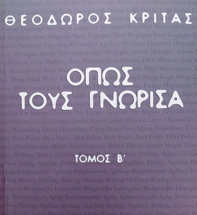 Θεόδωρος Κρίτας, Όπως τους γνώρισα, Τόμ. Β΄, εκδ. Λιβάνη «Το κλειδί», Αθήνα 2000, σελ. 189: