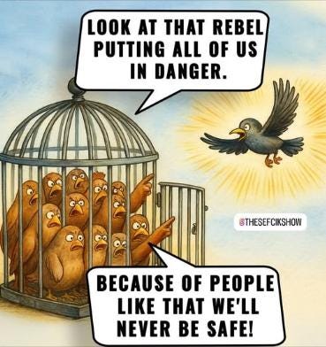 Για να εξακολουθήσουν να αισθάνονται ασφαλείς, πρέπει να πολεμήσουν λυσσαλέα όποιον τολμά και δραπετεύει από το κλουβί: τον μισητό «αποστάτη» που, στην πραγματικότητα, είναι ο ελεγκτής της συνείδησής τους.
