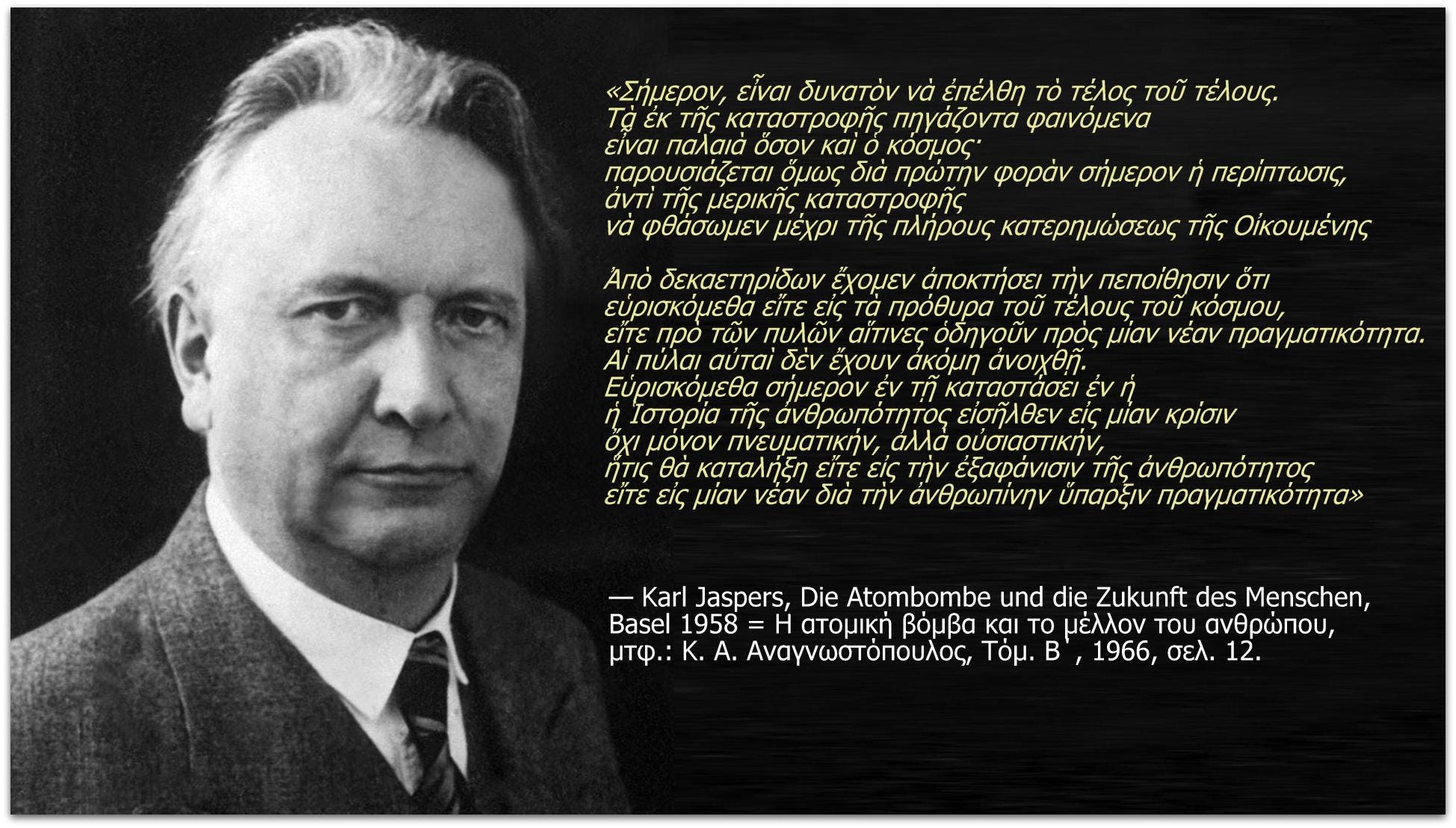 Jaspers, Η ατομική βόμβα και το μέλλον του ανθρώπου, Τόμ. Β΄, 1966, σελ. 331.