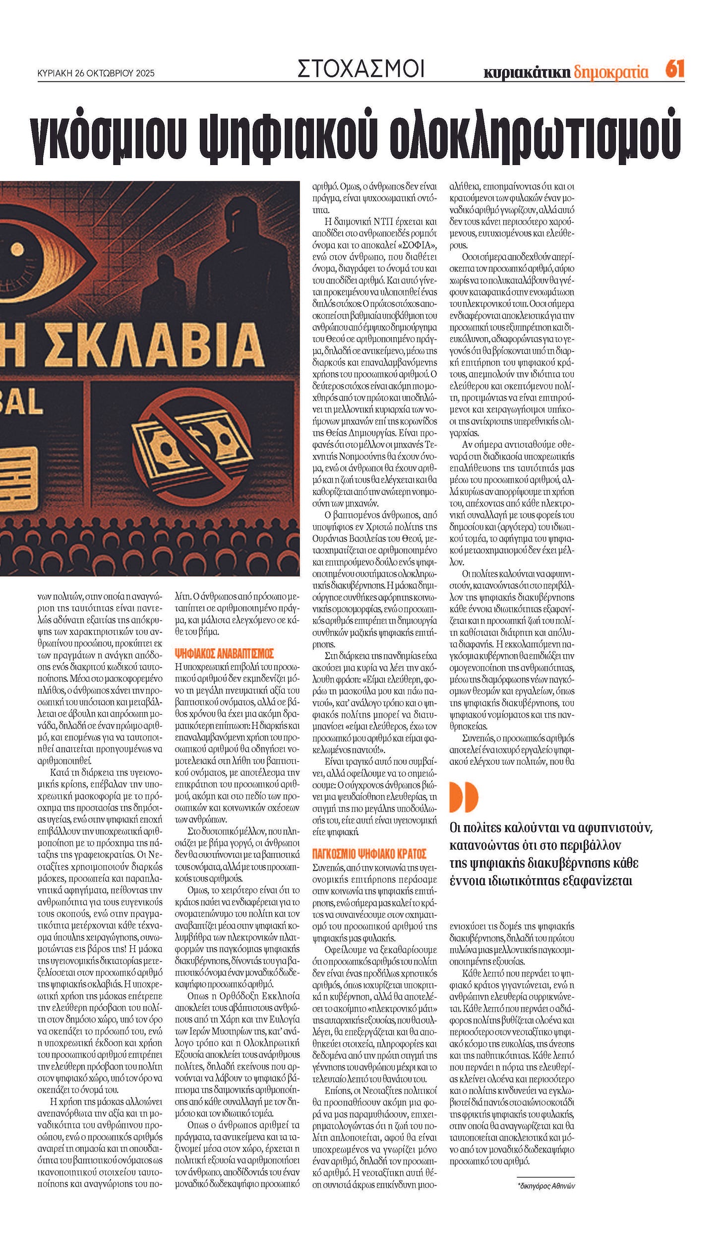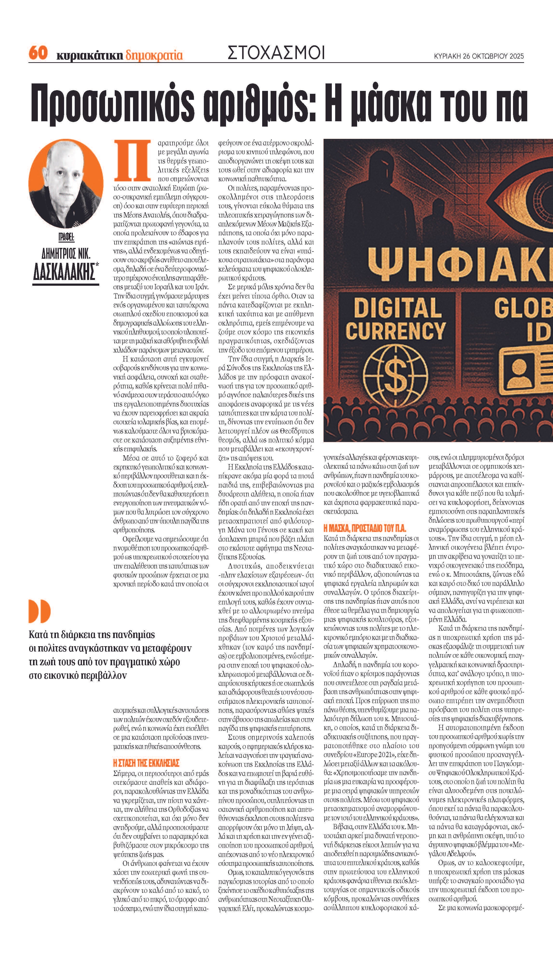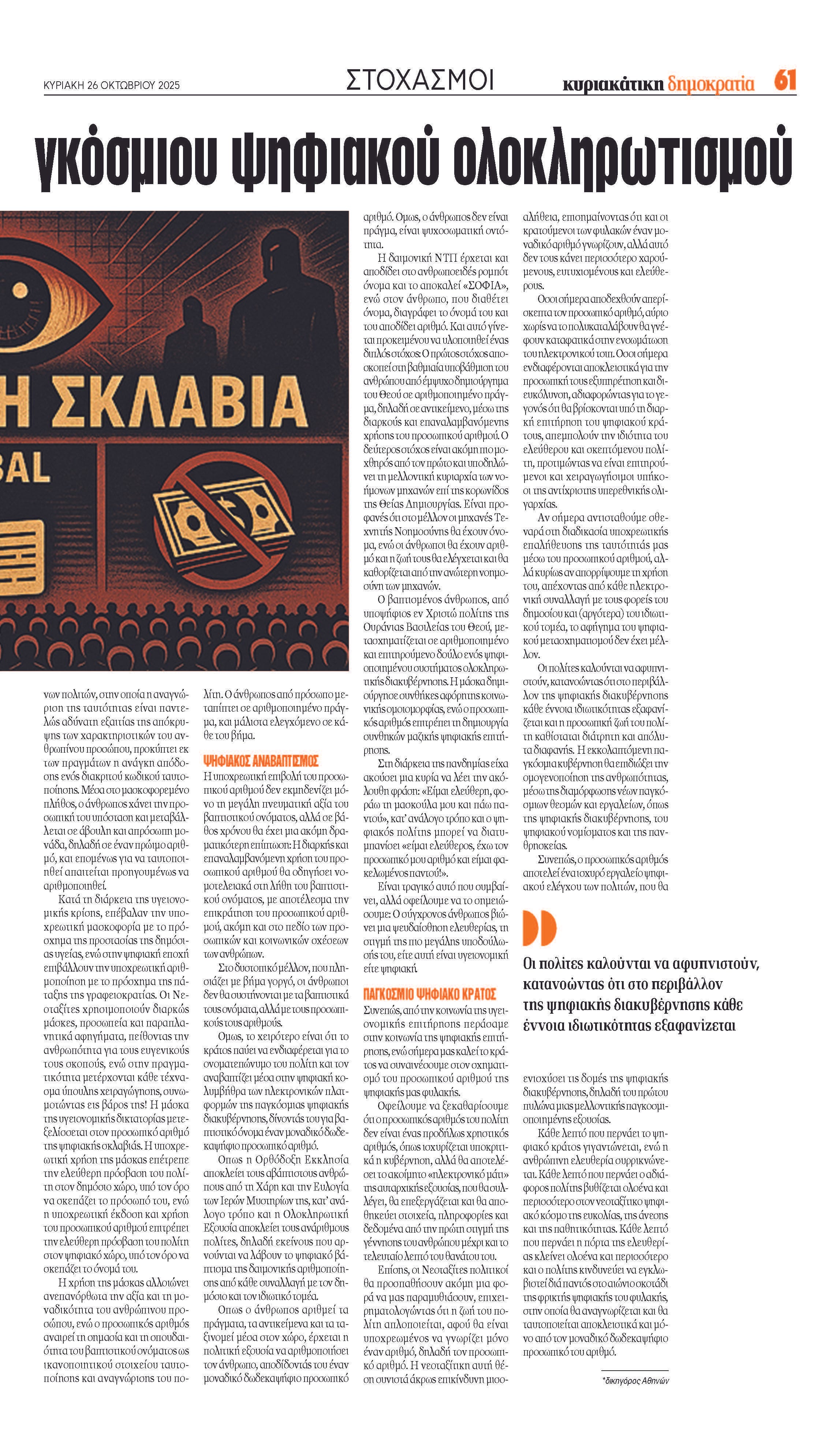 ΣΗΜΕΙΩΣΗ: Το παρόν κείμενο δημοσιεύθηκε σε συμπτυγμένη μορφή στο φύλλο της «ΚΥΡΙΑΚΑΤΙΚΗΣ ΔΗΜΟΚΡΑΤΙΑΣ», 26-10-2025, σελ. 60-61.
