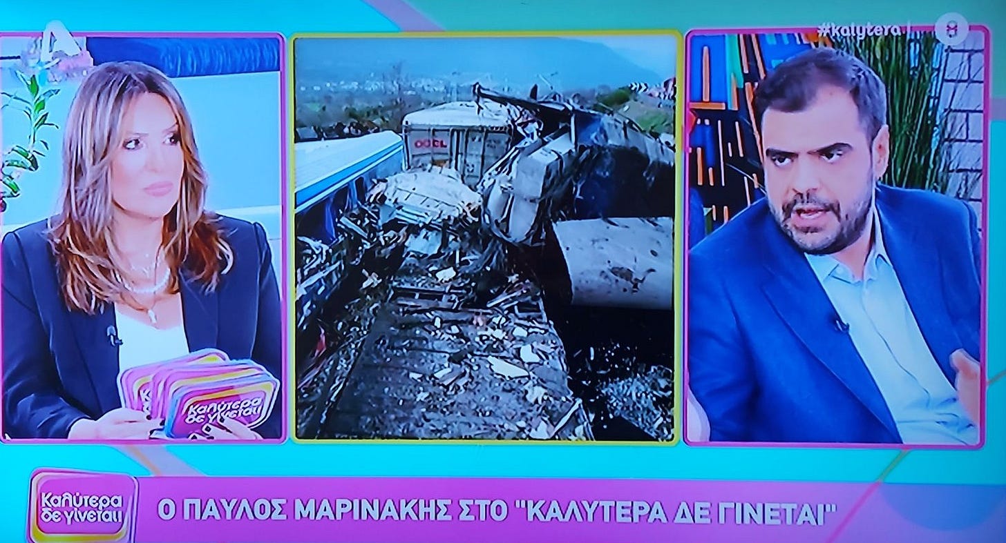 Καλεσμένος σήμερα στην εκπομπή της Ναταλίας Γερμανού «Καλύτερα δε γίνεται» (διάβαζε ανάποδα: «Χειρότερα δε γίνεται»), ο υφυπουργός προπαγάνδας Παύλος Μαρινάκης δεν είχε κανέναν ανασχετικό φραγμό να χρεώσει, μεταξύ άλλων, στήσιμο «επιχείρησης προπαγάνδας άνευ προηγουμένου» σε όσους μίλησαν για συγκάλυψη της κυβέρνησης στην υπόθεση των Τεμπών!