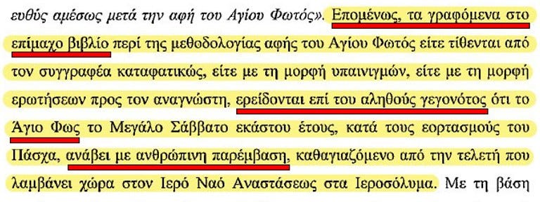 Είναι κρίμα που τέτοια σπάνια και τόσο σημαντικά βιβλία, τα οποία κονιορτοποιούν τους αρνητές της θαυματουργικής τελετής της αφής του Αγίου Φωτός δεν αναδεικνύονται από τους εκάστοτε σχολιαστές που επιλέγονται για την τηλεοπτική μετάδοση αυτού του κομβικής σημασίας γεγονότος για την Ορθοδοξία.