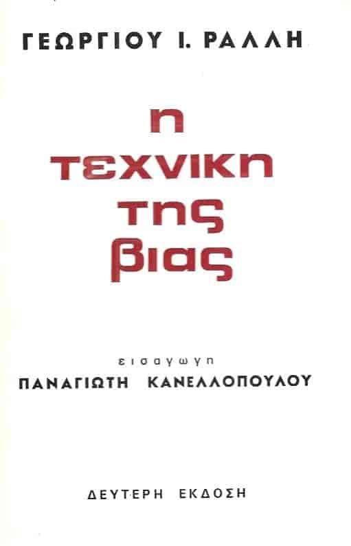 Πολύ σημαντικό είναι το βιβλίο του Γεωργίου Ράλλη «Η τεχνική της βίας» (με εισαγωγή Παναγιώτη Κανελλόπουλου), το οποίο είχε εκδώσει το 1972. Σε αυτό ανέλυε με εντυπωσιακή ακρίβεια τις πρακτικές της προπαγάνδας που μολύνουν ένα «δημοκρατικό καθεστώς».